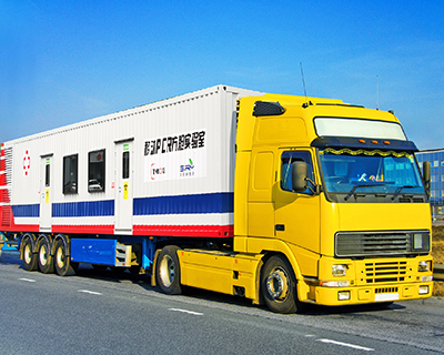 移动PCR方舱实验室严格按照P2+生物安全实验室的标准设计建造,配备有核酸检测仪器,并设置洗消室,高度集成水、电、送排风、废气和废水处理,及医疗消杀处理设备,保证人员和周边环境的安全;箱体内配备照明、紫外灯、台柜、设备、冰箱等;送风管在箱体内一体成型,在箱体外通过专门构件连接;排风单独设置,风柱集成排风机。